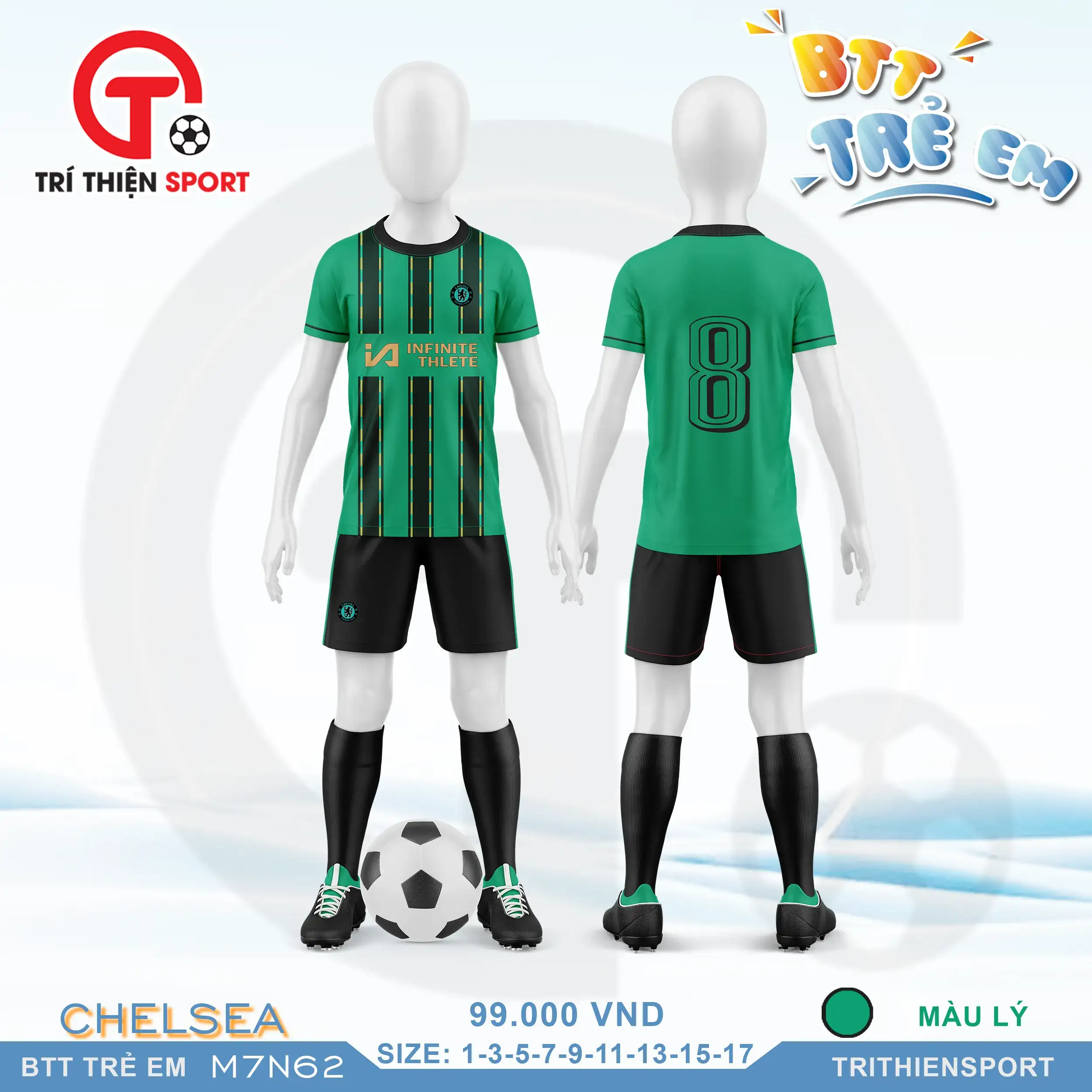 Bộ quần áo bóng đá trẻ em CLB Chelsea có đặc điểm sau: