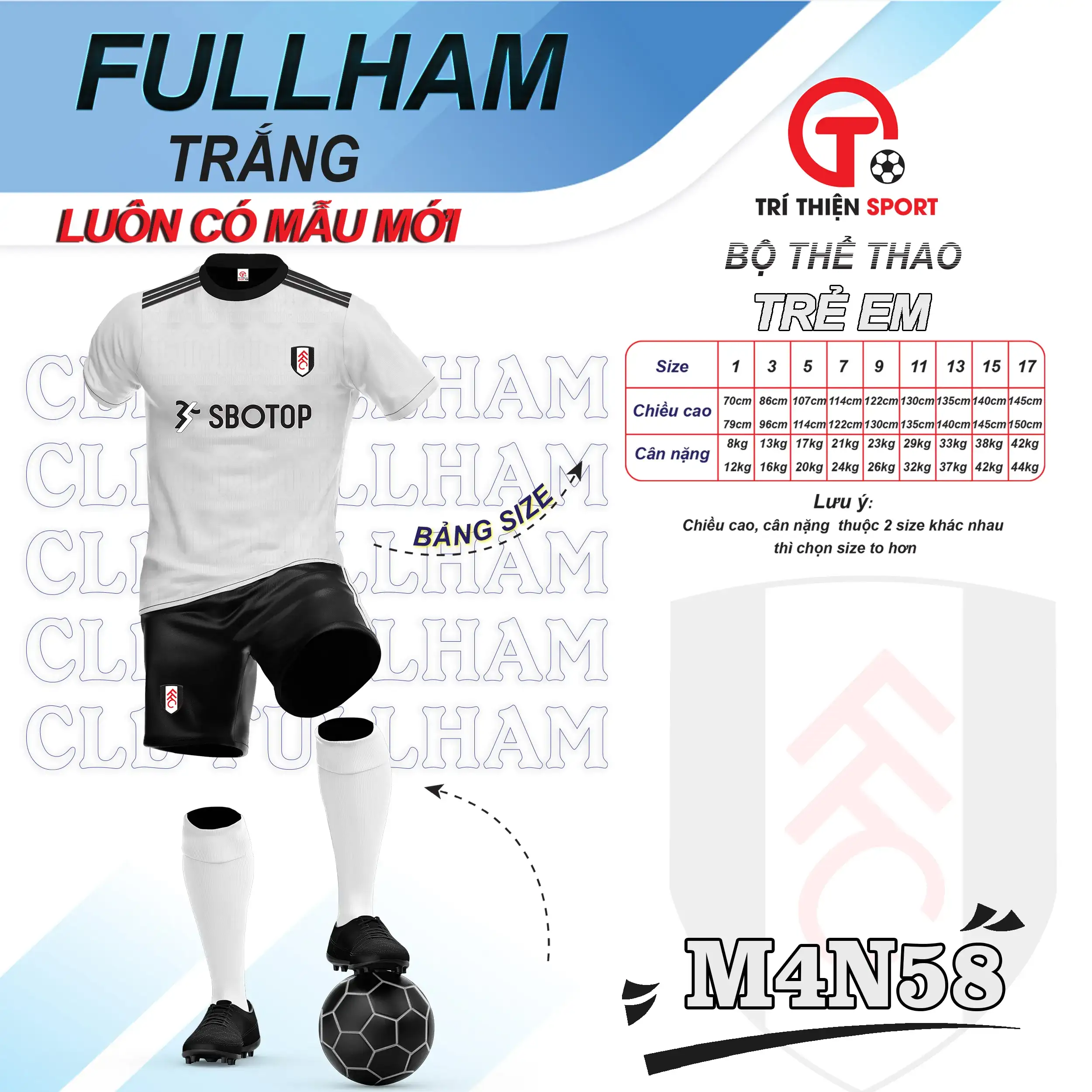 Bộ quần áo bóng đá trẻ em CLB Fullham có đặc điểm sau: