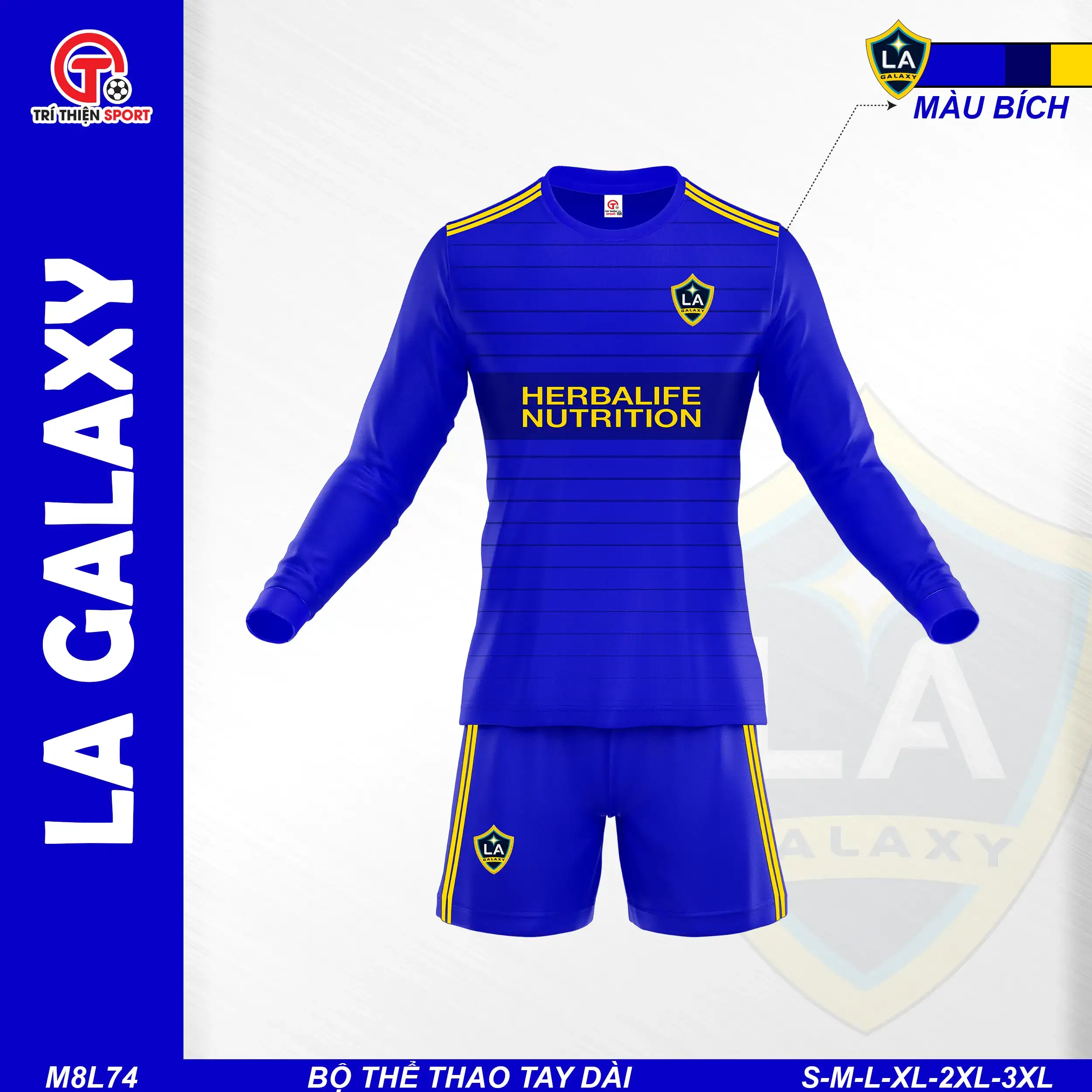 Bộ quần áo bóng đá người lớn ta dài CLB LA Galaxy có đặc điểm sau: