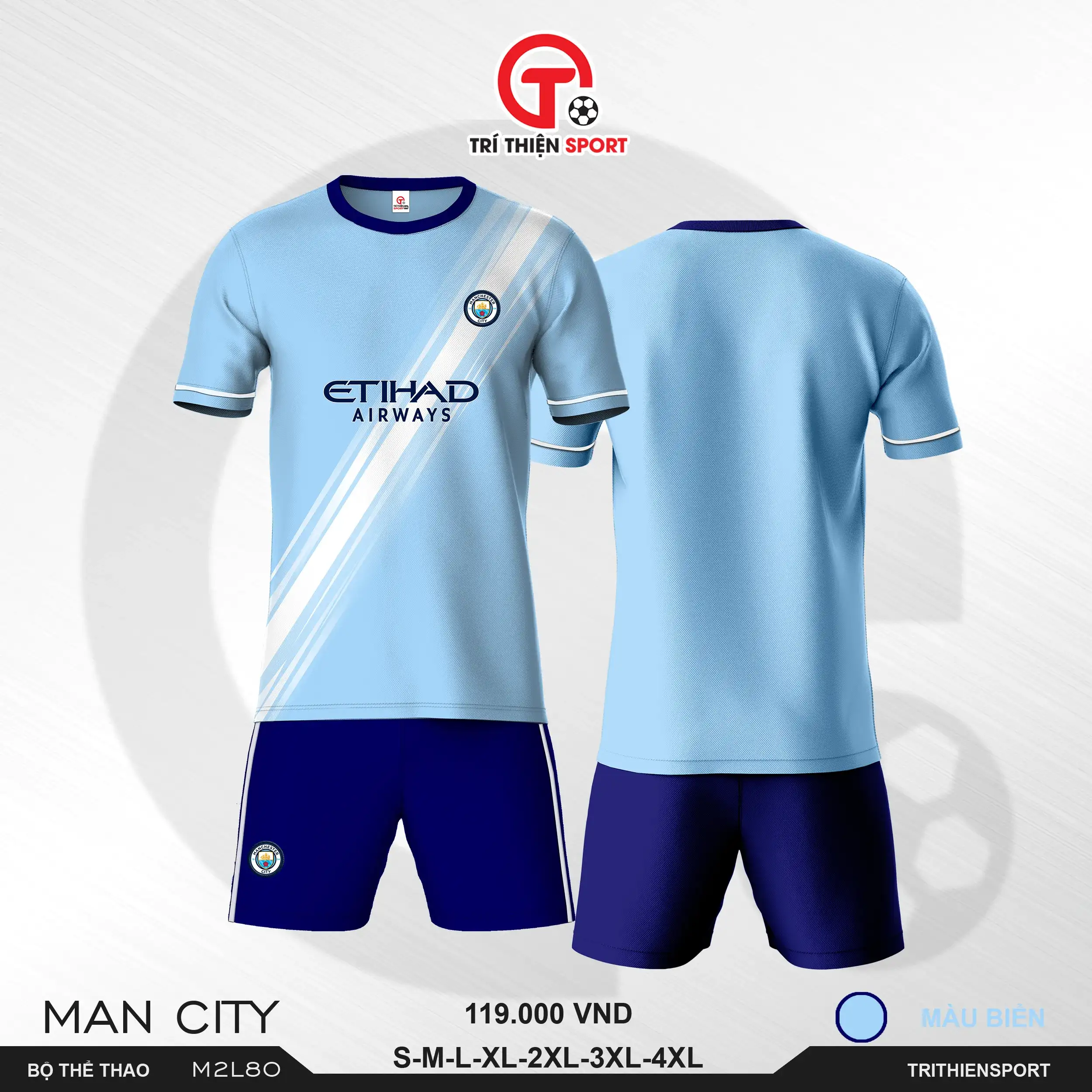 Bộ quần áo bóng đá người lớn CLB Manchester City có đặc điểm sau: