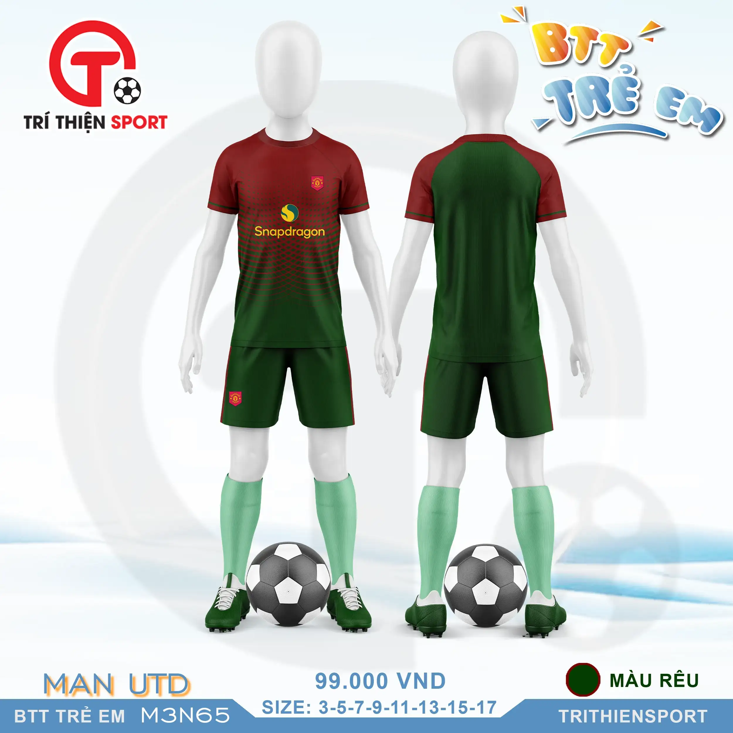 Bộ quần áo bóng đá trẻ em CLB Manchester United có đặc điểm sau: