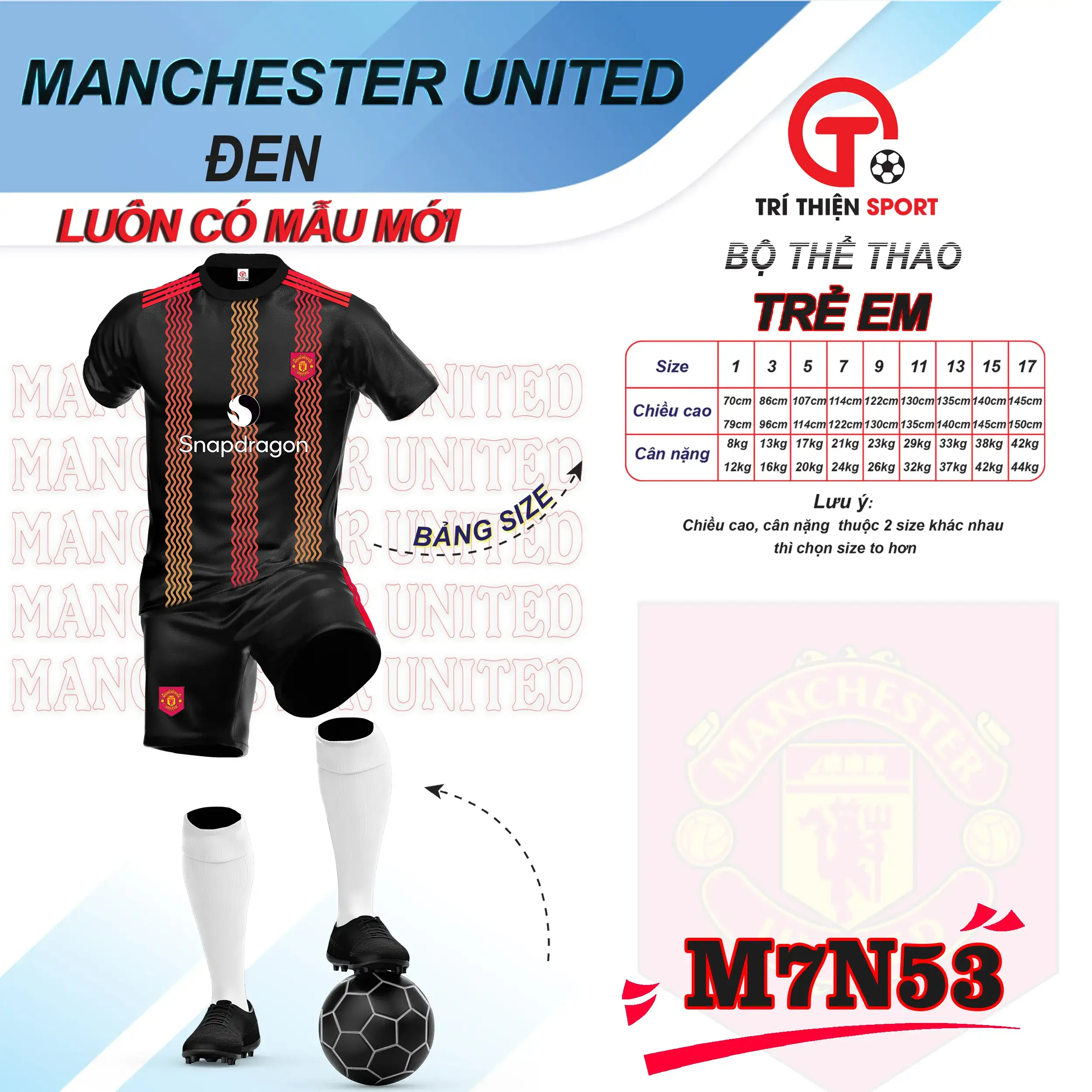 Bộ quần áo bóng đá trẻ em CLB Manchester United có đặc điểm sau: