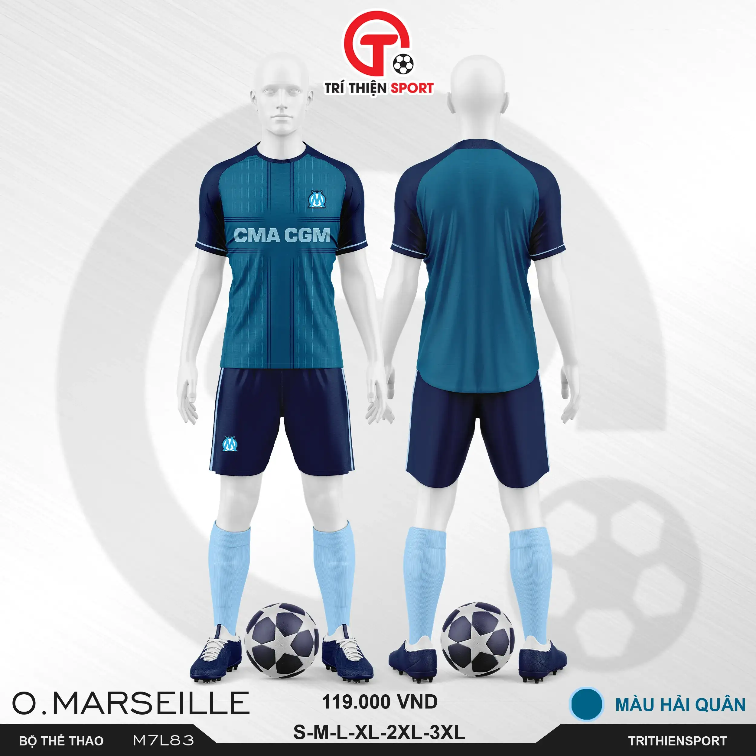 Bộ quần áo bóng đá người lớn CLB Marseille có đặc điểm sau: