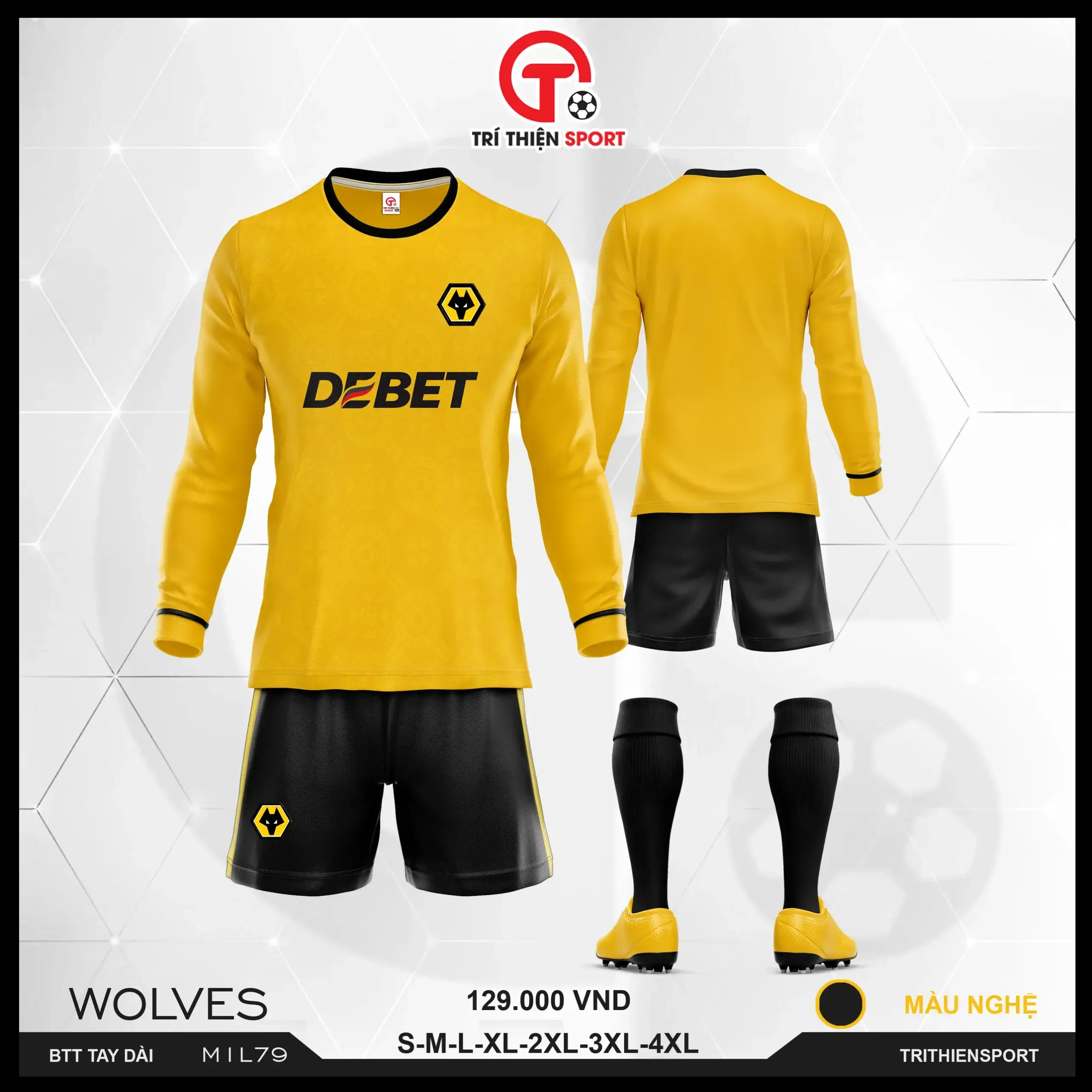 Bộ quần áo bóng đá người lớn tay dài CLB Wolves có đặc điểm sau: