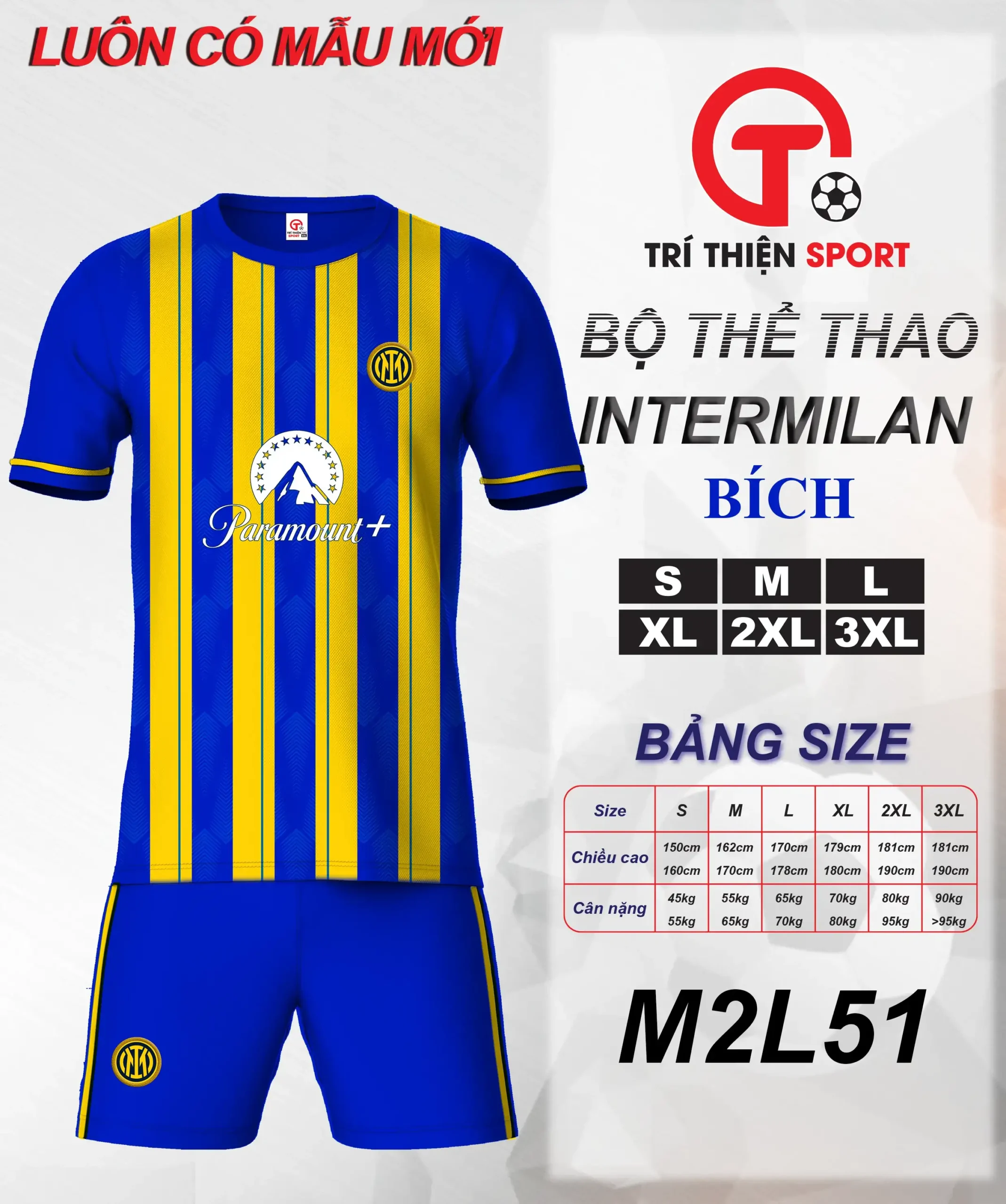 Bộ quần áo bóng đá người lớn CLB Inter Milan có đặc điểm sau: