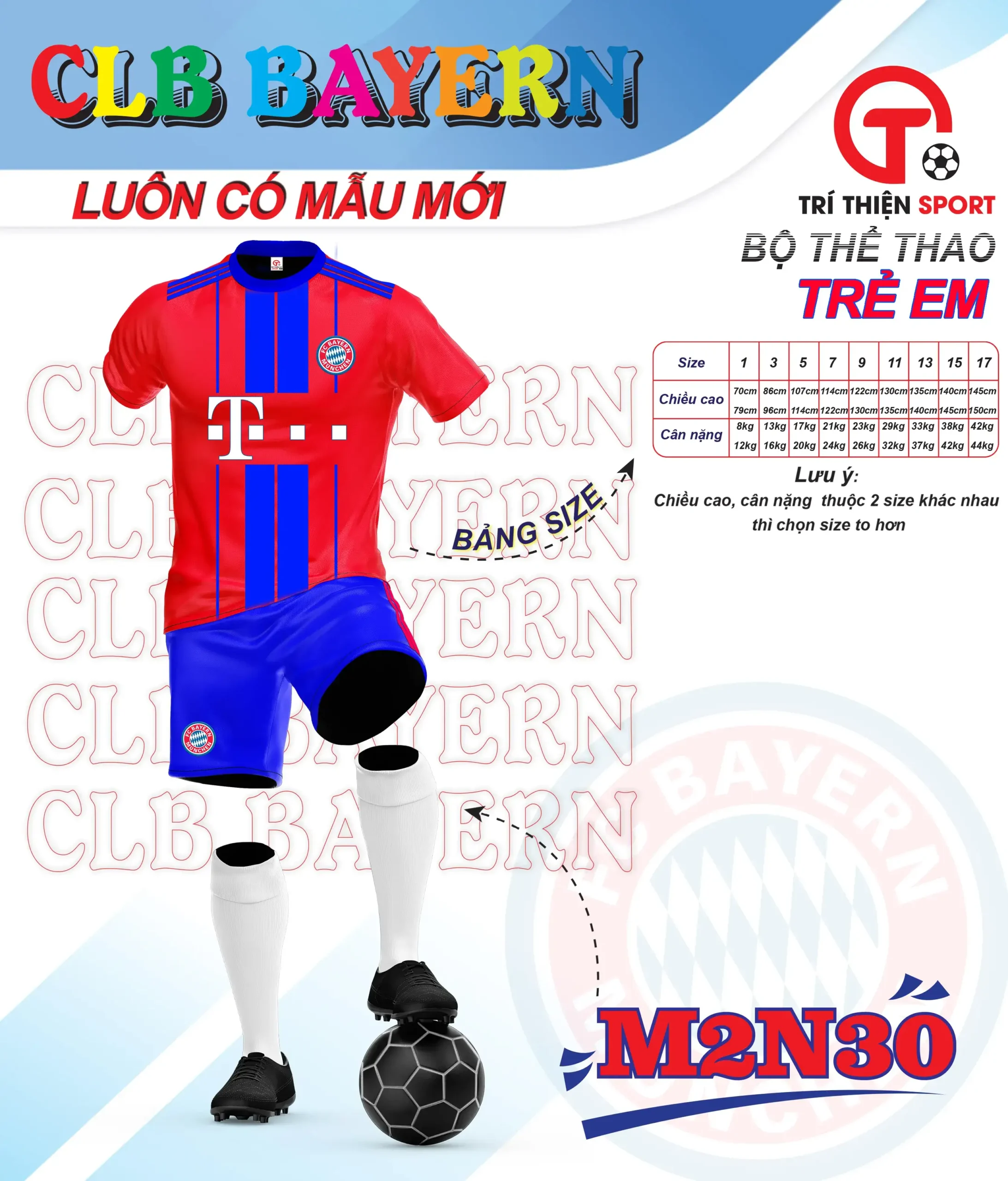 Bộ quần áo bóng đá trẻ em CLB Bayern Munchen có đặc điểm sau: