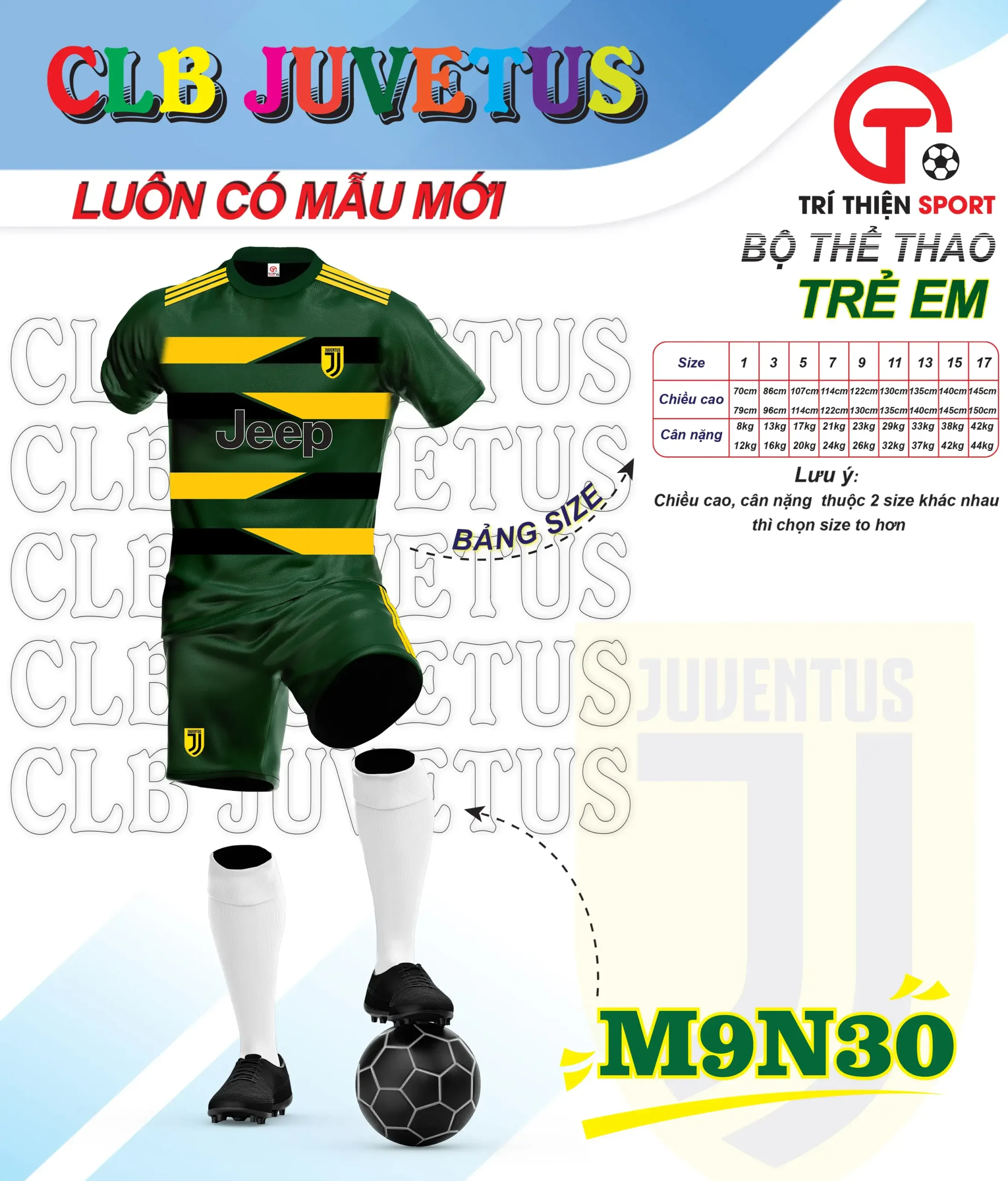 Bộ quần áo bóng đá trẻ em CLB Juventus có đặc điểm sau:
